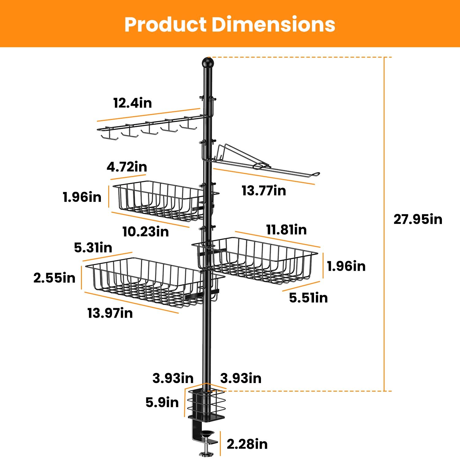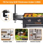 Wide Compatibility*:Equipped with a C-shape clamp base,this griddle caddy can be firmly attached to any Blackstone griddle cooking stations,outdoor tables or any other BBQ grill with thickness under 2.28in. A perfect addition to any outdoor party,like BBQ,camping,picnic,family gathering.