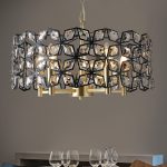 About this item-Modern crystal fashion chandelier is the best decoration in your home, showing your noble quality.Pendant Lights with long life, low energy consumption, high color, energy saving, creating green home create a different modern and simple style in your room , very elegant and eye-catching. Simple and elegant ceiling lamp suitable for kid's room, Living room, bedroom, study, dining room, bars,clubs, wedding, etc Interior lighting and Any place where you need romantic warm lights.(Sand gold plus black iron lamp body, ingenious combination of K9 crystal.Includes elegant K 9 crystal decor.Comes with 47.2" hanging chain.It requires 5 E12, 60 -watt candlelight bulb.This product does not contain a light source)
