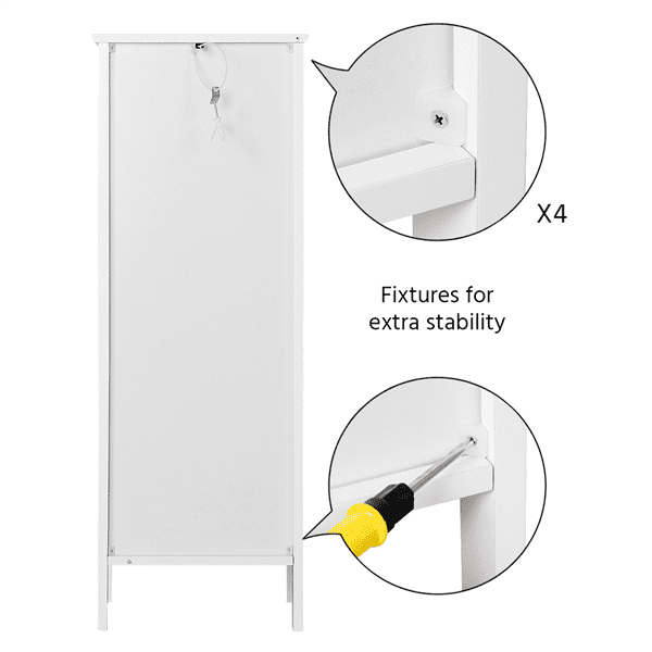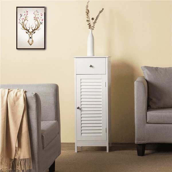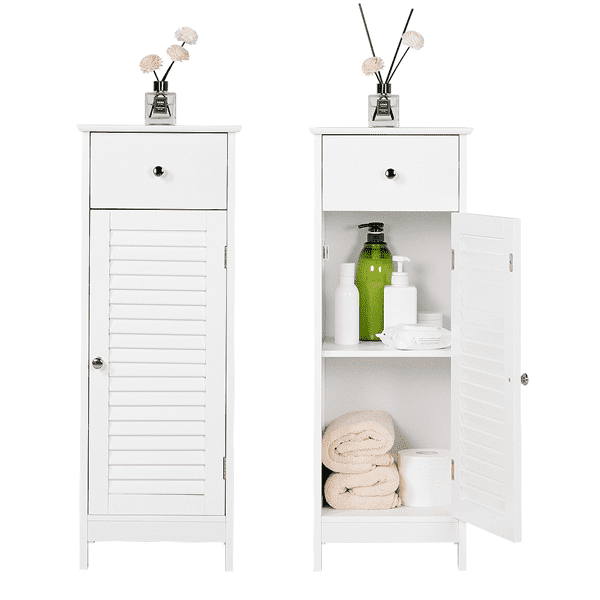 High Quality Material: our bathroom storage cabinet is made of high quality MDF material, sturdy and durable to use and not easy to breakModern Design: stylish and fashionable design perfectly compatible seamlessly with any room décor and also adds a touch of elegant charm to your roomLarge Storage Space: the cabinet comes with large storage space, which will keep everything in order; one shutter door and one drawer design can help you classify your items better. You can put a variety of toiletries, cosmetics, and other sundriesMulti-purpose Use: this bathroom cabinet is not only used as bathroom cabinet, but also can be used as side cabinet and cupboardVersatile & Practical: compact size and practical function make it suitable for bathroom, bedroom, hallway or kitchenWaterproof: the high-quality MDF wooden material can stand the humidity of the bathroom and prevents moistureEasy To Assemble: it comes flat packed with detailed instructions for quick easy assembly